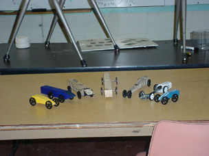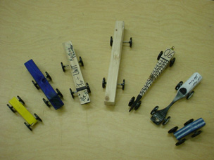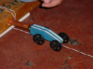 Cars are propelled by the gaseous emission of CO2 cartridges |