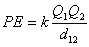 We have seen in the previous section that like charges repel. Consider some charge +Q1 fixed at some point in space. If we bring a second charge, +Q2, from infinity and cause it to reside somewhere near the first charge, we will experience a force of repulsion along the way. That means that by overcoming that repulsive force over some distance we are doing work on the system. What happens to that work? We can find out if we release the second charge; it moves away, picking up speed and therefore acquiring kinetic energy along the way. Thus, the work that we did in bringing the two charges together can be stored temporarily as electric potential energy. It can be shown that for two charges Q1 and Q2 brought close together so that they are separated by some distance d, the electrical potential energy in the system is given by