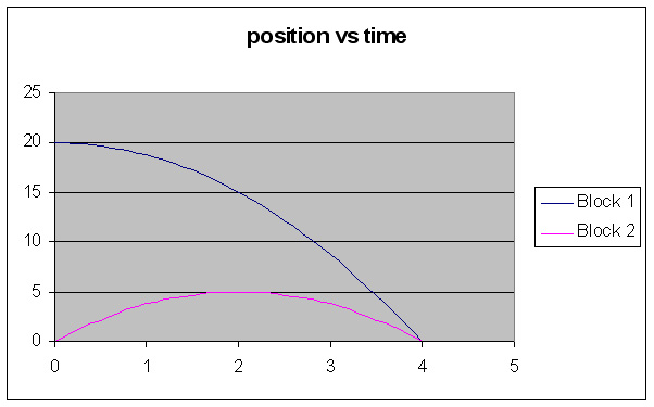 from the bottom.Block 2 travels part way up, stops, and returns