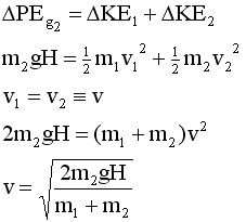 If friction enters the pictuure, we treat it as another place for energy to go. Note that in the bottom line, if um1 is greater than m2, the radicand goes negative and the blocks do not move when released. |