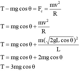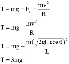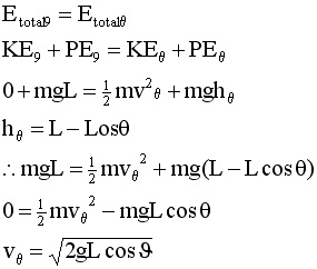 Again, the law of cnoservation is at work here. The energy inventory shows in line 3. Theta is the angle made by the string with the vertical. |