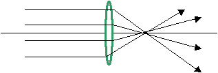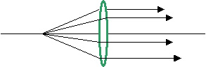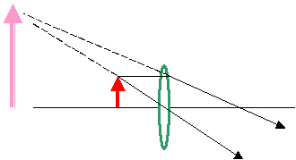 In the diagram at left, rays have traveled so far from infinity that they reached the lens parallel to each other. These rays strike the lens and then they pass through the focal point.Case 2. 2f < do < infinity