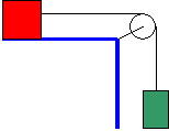 Because we have for now, at least, neglected friction, the red block on the table will start slipping as soon as it is released. |
